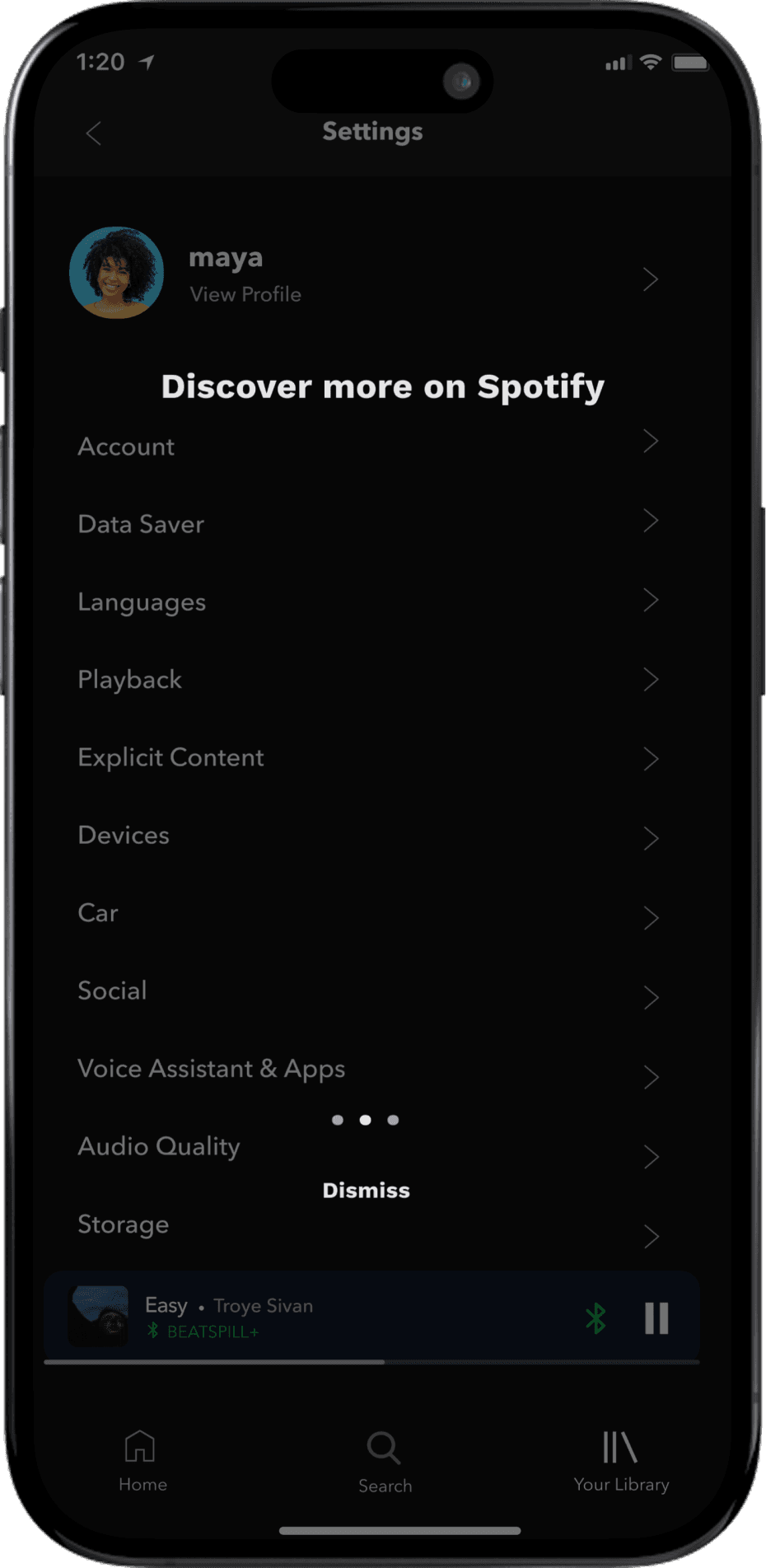 Solution: Given how different users interact with Spotify, there is an opportunity to offer a more customizable experience. For example, some users could be given the option to streamline their UI, focusing on personal playlists and music discovery, while other users could prioritize social features and friend activity.