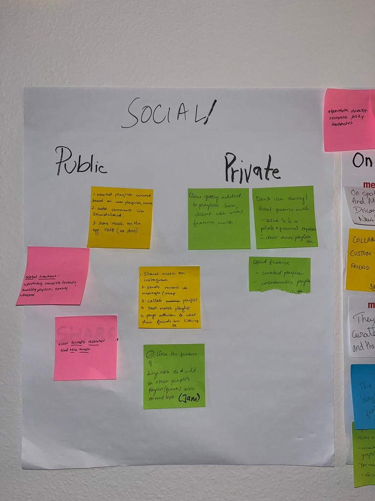 Issue: Our study revealed two types of users, one type engaged with the users and wanted to interact with the social features while the others wanted t a personal listening experience. Either user groups weren't able to perform as desired during the observation tasks.