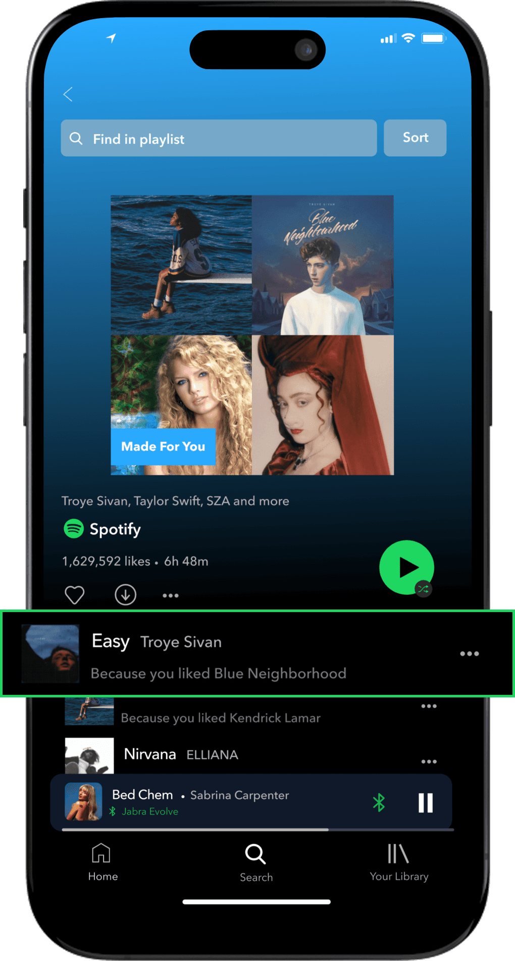 Through UX research, I evaluated Spotify’s interface for playlist management and social interactions. Leading 12 user interviews and usability tests, I found a SUS score of 53.13, well below the 70 benchmark. To address gaps in discoverability, social engagement, and music exploration, I proposed three targeted feature enhancements.
